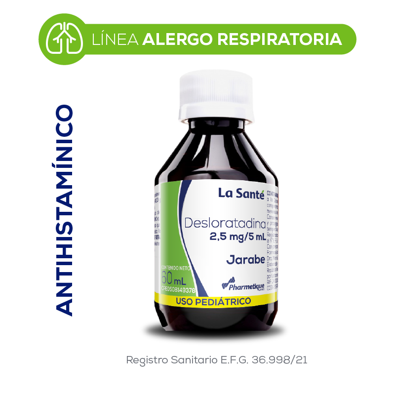 La receta: Desloratadina, 2.5 mg/5 mL X 60 mL, Jarabe